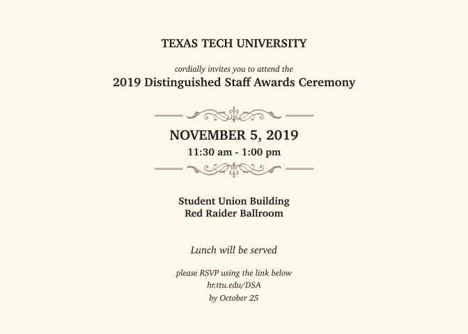 TTU HR Distinguished Staff Awards Invitation