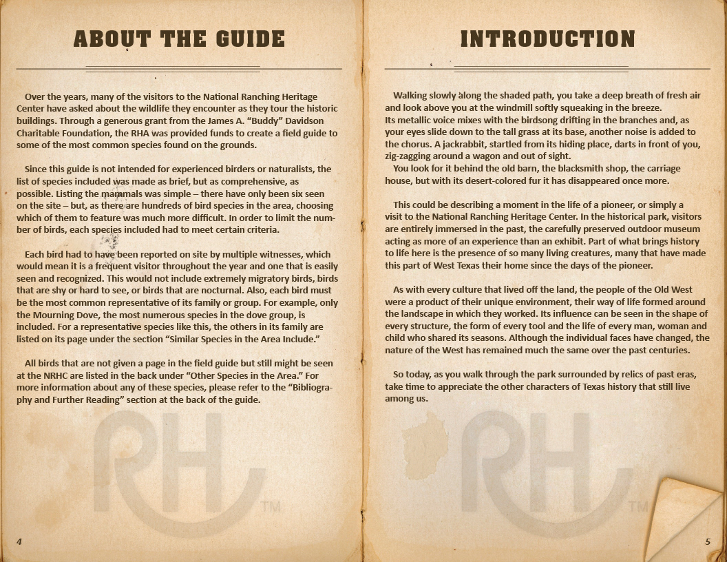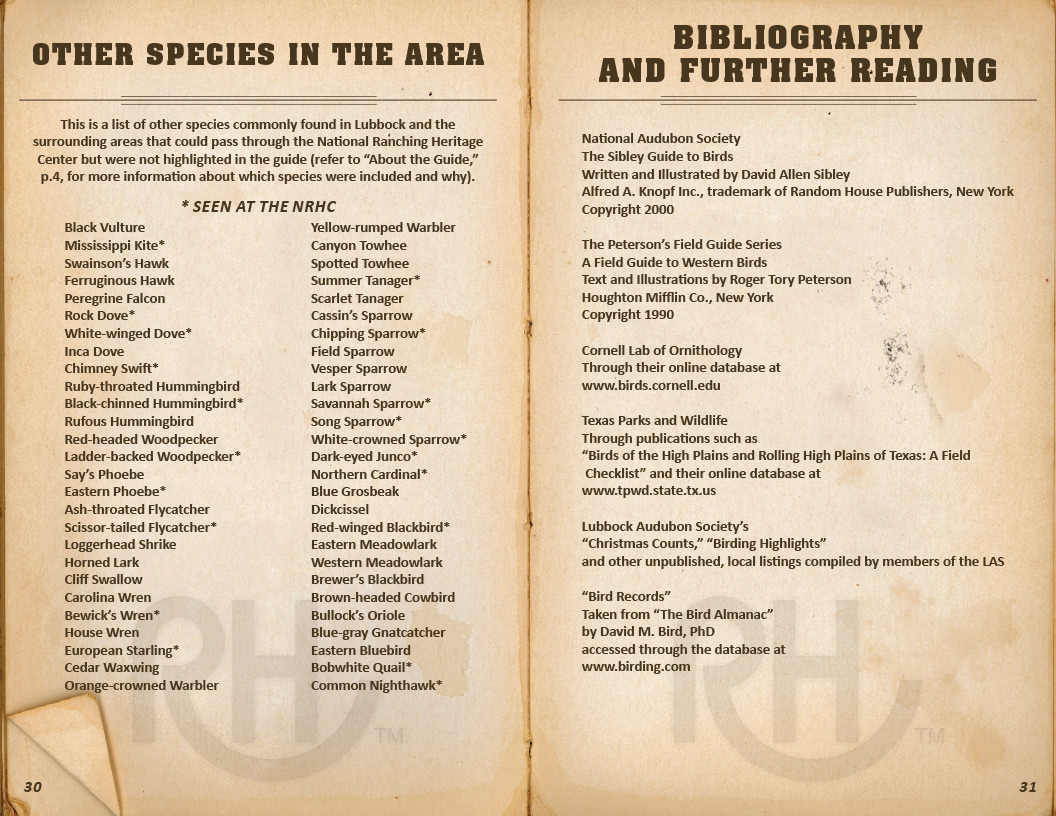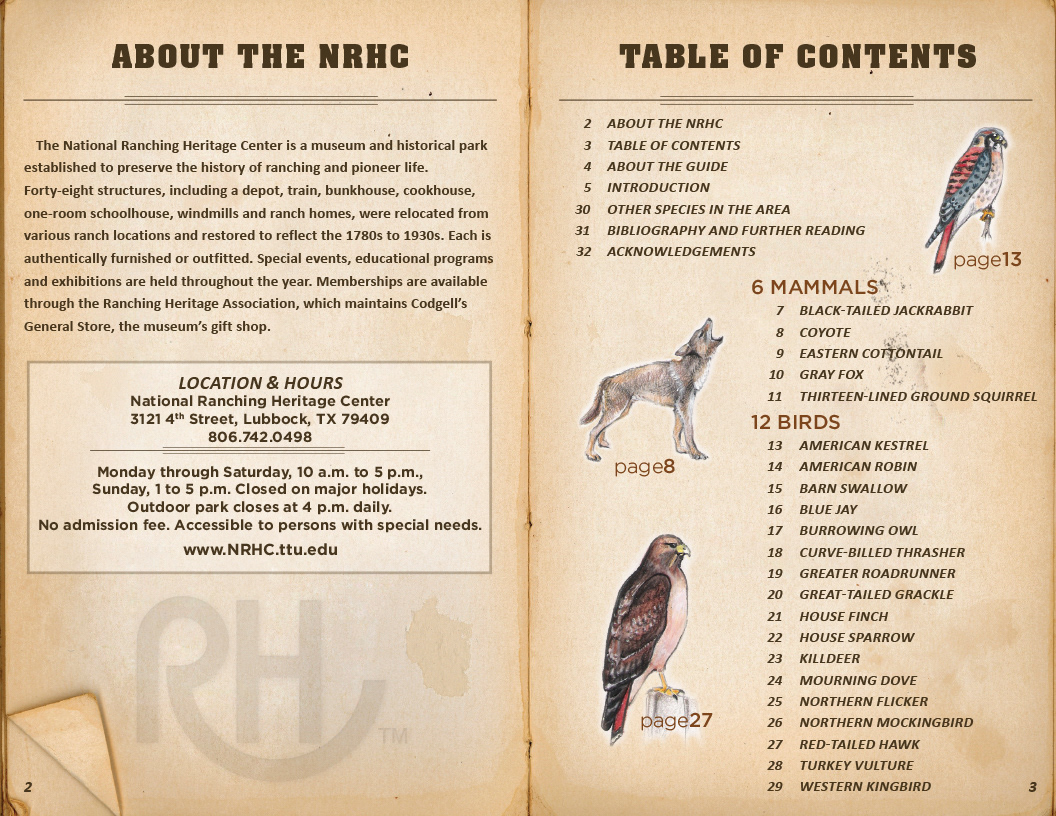 Ranching Heritage Association Field Guide to some of the most common species found on the grounds of the National Ranching Heritage Center. (Gold Addy Award Winner, American Advertising Federation, February 2011.